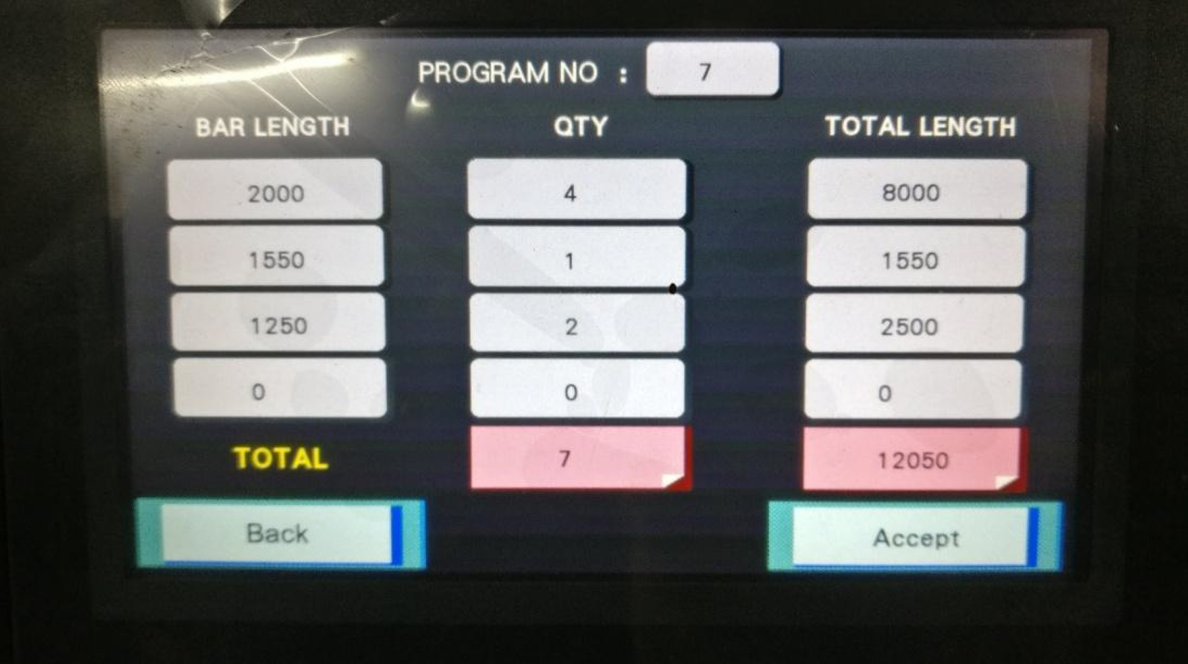 A 12m Stock Bar May Be Cut in Various Lengths. the Plc Accepts Such Data as a Program. Stored Program Is Recalled; Machine Is Set in Operation